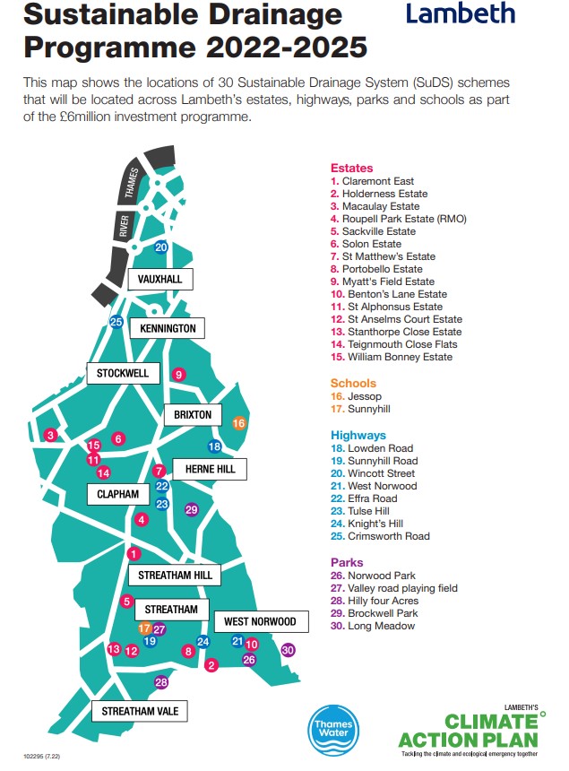 The proposals are part of a sustainable drainage programme being rolled out across the borough, in partnership with Thames Water. This aims to relieve pressure on ageing sewage system locally by mimicking natural drainage features including trees and wetland areas. Proposals for Myatt’s South include new rain gardens, with a pop up event being held to let resident’s give their feedback about the plans. Details of the drop in are: