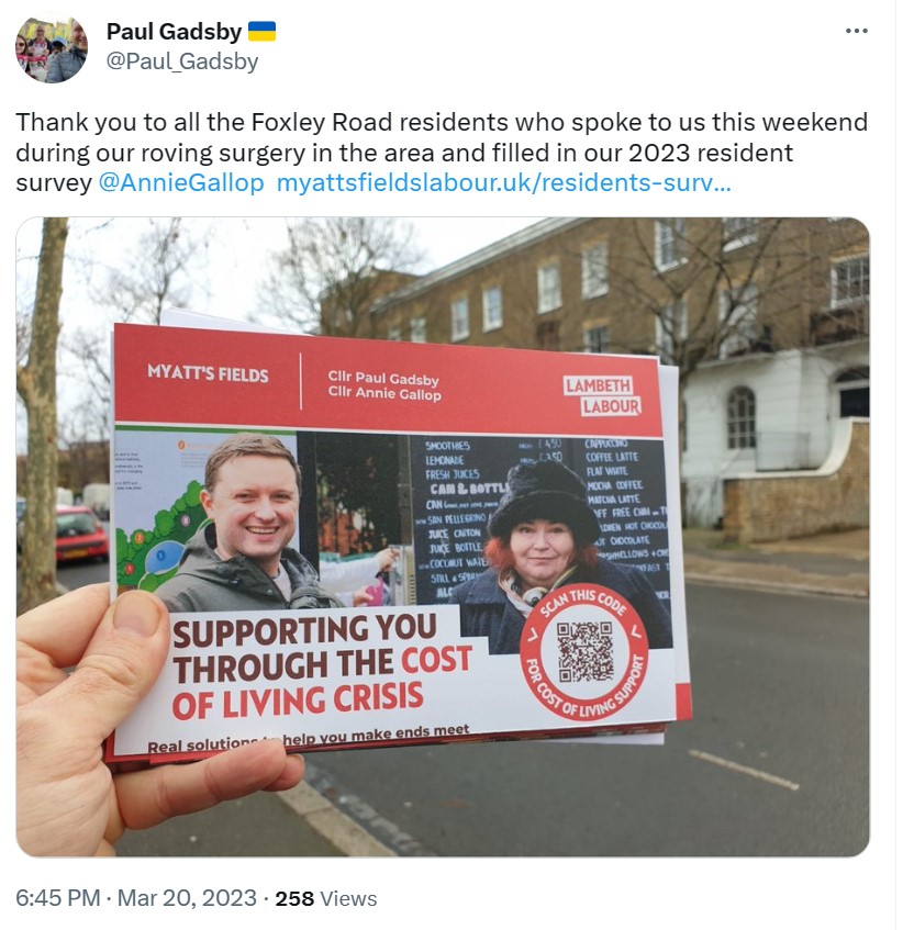 Councillors have successfully lobbied for a number of new public cycle storage hangers in recent years, including on local estates. New bike hangers have been installed on both the Paulet Road estate, the Myatts North estate and the Lothian estate, as well as on local streets.