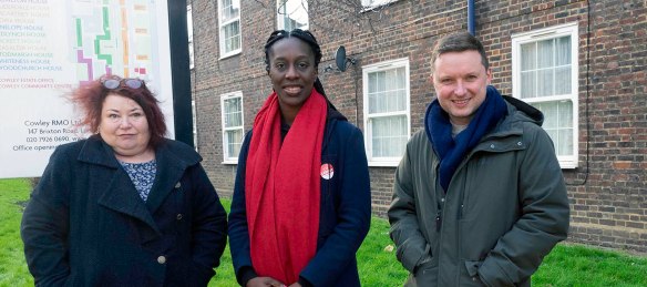 Cllrs Gallop and Holland at the Patmos Lodge development, with Lambeth’s deputy leader, Cllr Dan Adilypour. Councillor Gallop, along with Cllr Paul Gadsby, have been instrumental in bringing the project to the area. Cllr Gadsby said: “I was very pleased to speak in favour of this development at Lambeth’s planning committee a number of years ago: it is incredibly important we build more council homes as part of a mix of genuinely affordable housing for our residents. More of this please!”